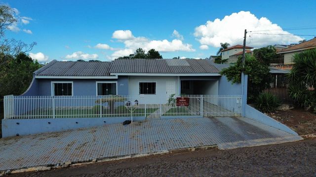 Casa completa e aconchegante para você e sua família! Conta com 3 quartos, duas salas espaçosas e 2 banheiros, além de acabamento em gesso nos tetos que valoriza ainda mais o ambiente. Área externa com churrasqueira, lavanderia com tanque e fogão a lenha embutido, ideal para momentos especiais. Possui portão eletrônico com vaga para até 2 carros e pisos de madeira em grande parte da casa, trazendo charme e conforto.